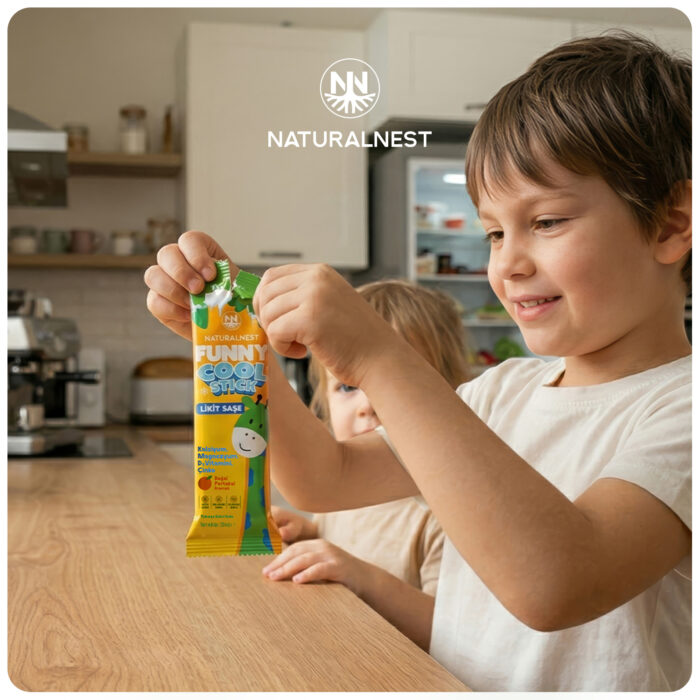 NaturalNest Cool Stick Likit Saşe; Dondur kullan seçeneği ile çocuklar için eğlenceli ve lezzetli tadı ile keyifli bir deneyim sunar.