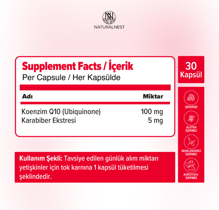 | Koenzim QH (Ubikinol): | 100 mg |