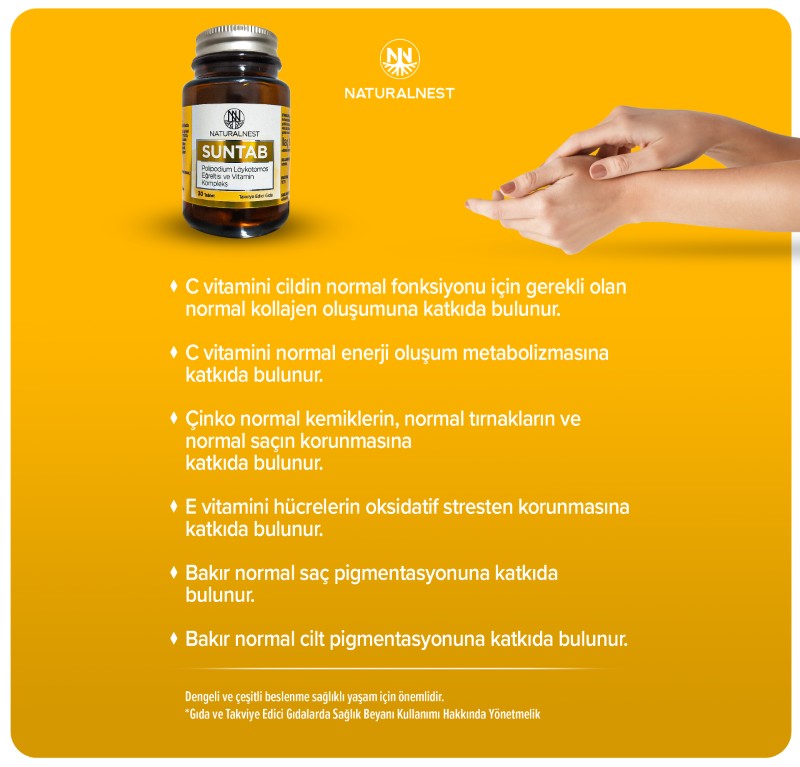 C vitamini cildin normal fonksiyonu için gerekli olan normal kollajen oluşumuna katkıda bulunur.